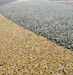 特别注意:胶粘石对石子有特殊要求,一般采用七彩石,利用特殊胶粘剂把石子有机结合在一起,具有透水功能。